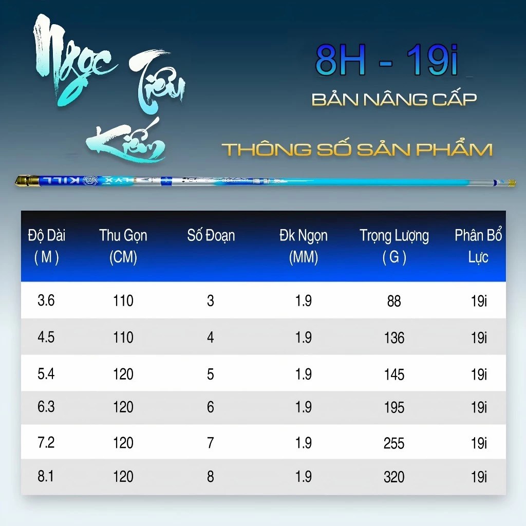 Cần Câu Đài Ngọc Tiêu Kiếm 8H Bản Săn Hàng Tặng Kèm Ngọn Phụ