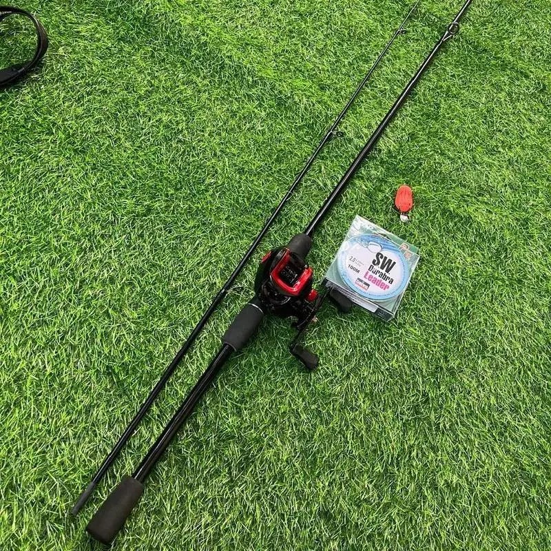 Combo cần câu lure máy ngang kèm máy và phụ kiện như hình và video
