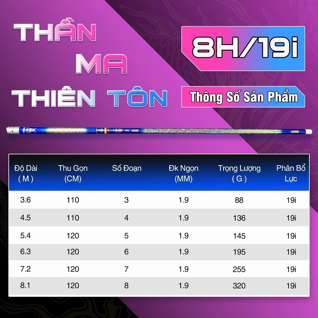 Cần Câu Tay Săn Hàng Danh Chấn Thiên Hạ 8H 19i Cacbon Cao Cấp