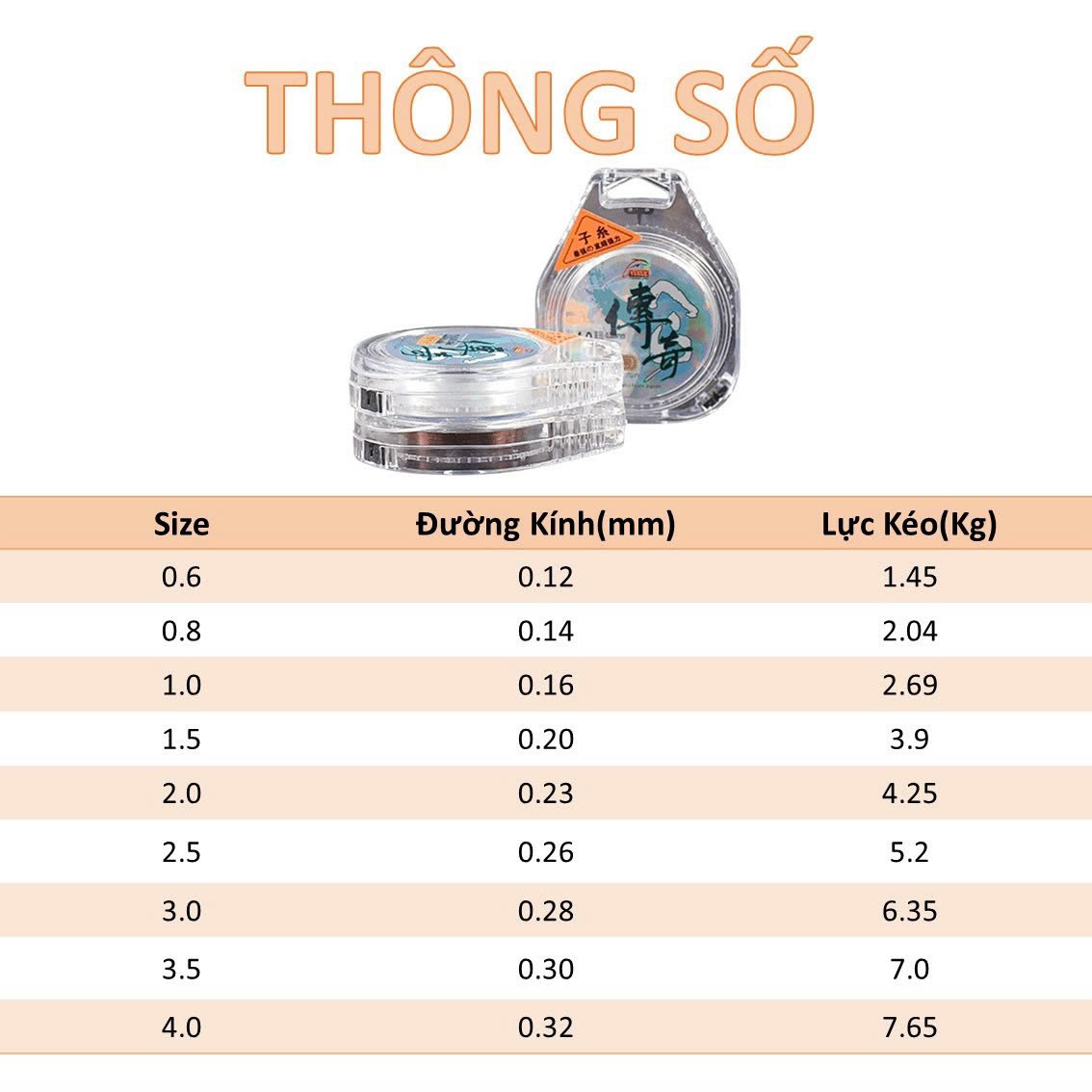 + Cước Trục thiết ngưu : số 1.5 -2.0 -2.5 -3.0 – 3.5 – 4.0 -4.5 – 5.0